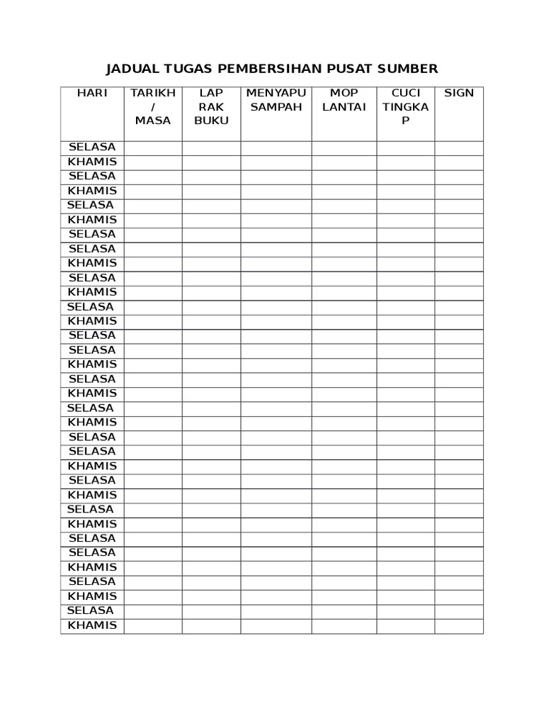Anda hanya perlu mendaftarkan nama pasukan dan memasukkan skor. Contoh Jadualcontoh Jadual Kerja Cleaner is among the most image we ascertained on the internet from reliable thoughts. Klik pada gambar untuk zoom Tak payah ikut bulat2 macam dalam gambar pun takpa.